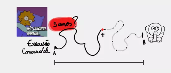 Aqui já conta com métodos de implementação, assiste várias palestras aleatórias, corre atrás de networking sem ter valor em mãos, faz vários cursos de metodologias sem amarração, no entanto, aplica um de cada vez, começa no financeiro, depois no comercial, depois no marketing, depois no operacional, e assim por diante, tudo sem pé nem cabeça. Quando se vê, já se passaram 5 anos e o negócio que poderia estar pronto em 2 ou 3 anos, não tem perspectiva e morre antes de completar seu processo sedimentar de base e o resultado desejado. Aqui está a maioria dos empreendedores, os 80% que morrem antes dos 5 anos. Muitos acabam adoecendo, por ter que voltar para uma CLT.