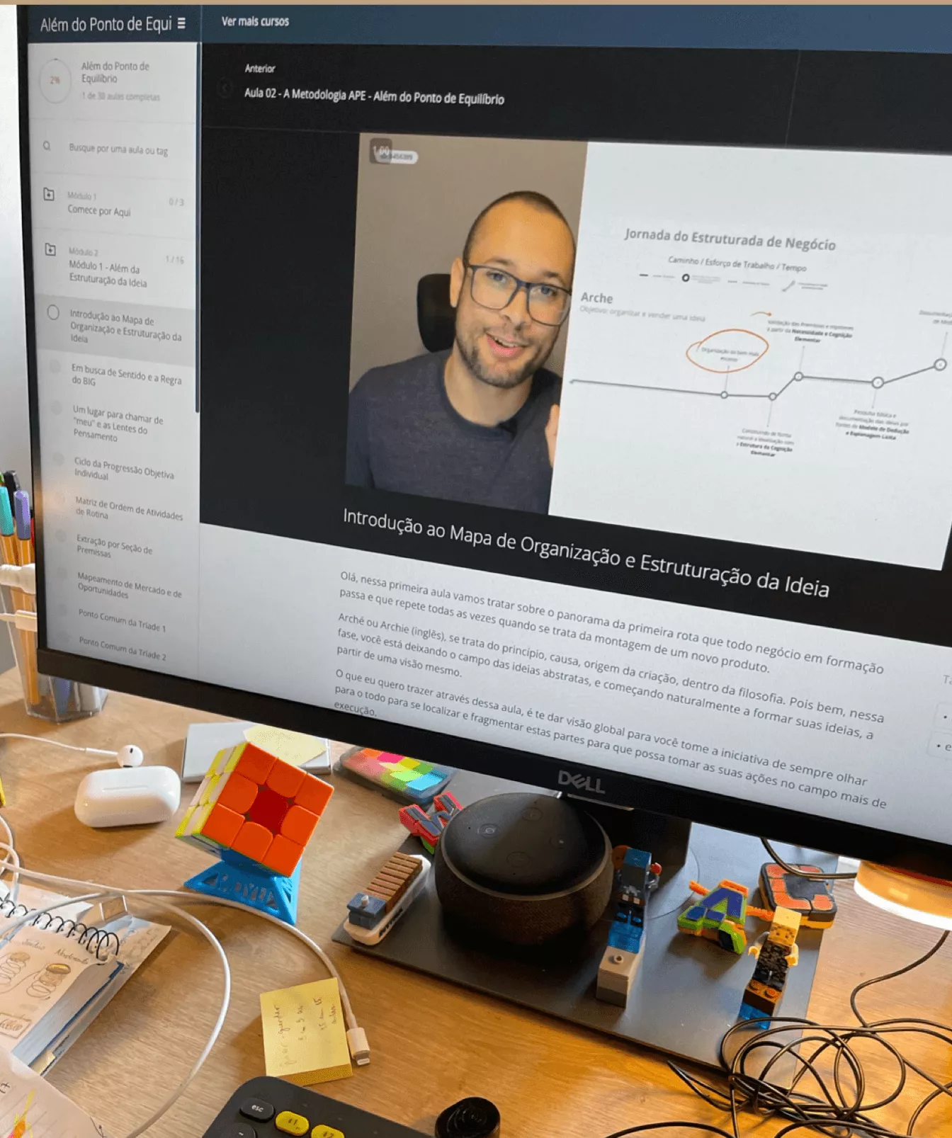 Em paralelo trabalhando nesse projeto no começo de 2022 queria colocar seu treinamento no ar, justamente por gostar da área de educação, viu que era a oportunidade de expandir o conhecimento das mentorias que fazia para um treinamento que pudesse alcançar mais pessoas com o essencial para o dono de negócio, nascendo assim Além do Ponto de Equilíbrio, um treinamento com 6 etapas de estruturação do negócio, da ideação à venda, do modelo à estruturação operacional.