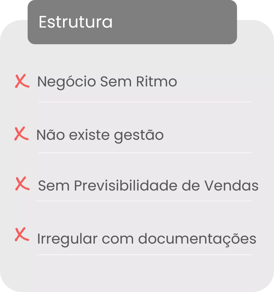 Para que o modelo se torne uma empresa, organizaremos as principais engrenagens vitais para prepará-lo para o crescimento e gestão de suas áreas Comercial, Administrativa e Operacional (CAO)