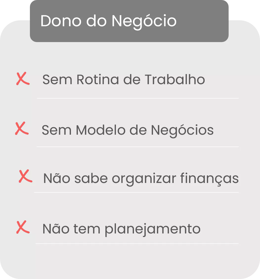 Boas intenções, péssima execução. Se esquece da gestão das emoções, da família, dos relacionamento. Tem o argumento: “vou focar apenas nisso.” E, infelizmente, vive pela lógica, o campo racional de achar que um negócio não se trata de ser, mas, apenas se trata de fazer e ter. Aqui o resultado foi visto de forma insustentável. Eu estive aqui no início do meu negócio. Conto a história mais abaixo.